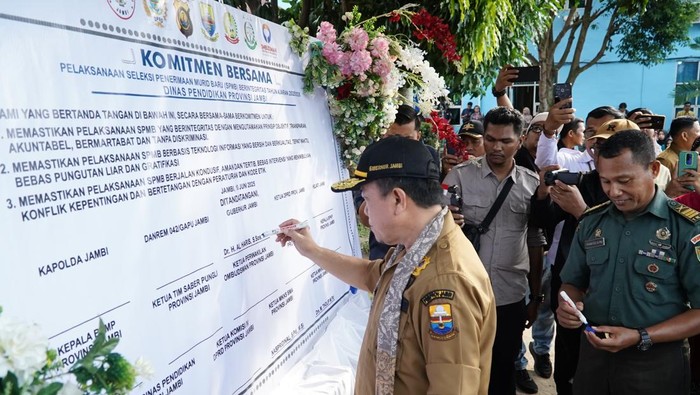 “Setiap tahun kita terus berupaya memperbaiki proses penerimaan siswa baru. Kita ingin SPMB ini berintegritas agar hasilnya berkualitas,” kata Al Haris usai menandatangani komitmen bersama SPMB bersama pihak Forkompinda di SMKN 1 Kota Jambi, Selasa (10/06/2025).