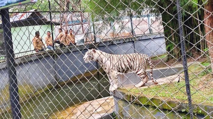 Harimau benggala putih dan singa putih Afrika ini didatangkan di Taman Rimba Jambi pada Rabu (15/10). Hewan berjenis kelamin jantan itu hadir dan sudah bisa dilihat secara dekat oleh pengunjung yang mau datang melihatnya.