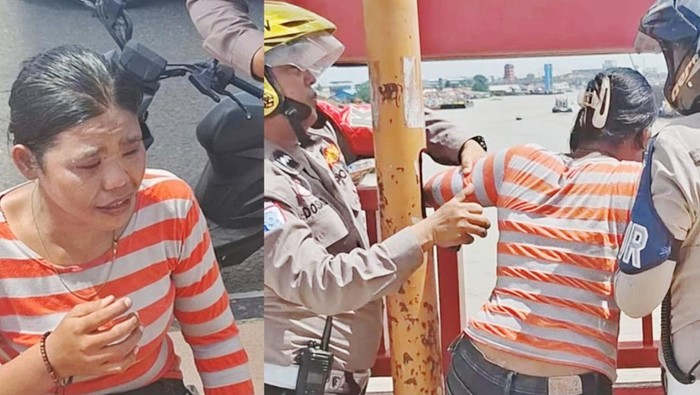 Mendapat laporan ada seorang perempuan yang hendak melompat dari atas jembatan Ampera, petugas Pos Lantas 502 bersama dua rekannya langsung mendatangi TKP.