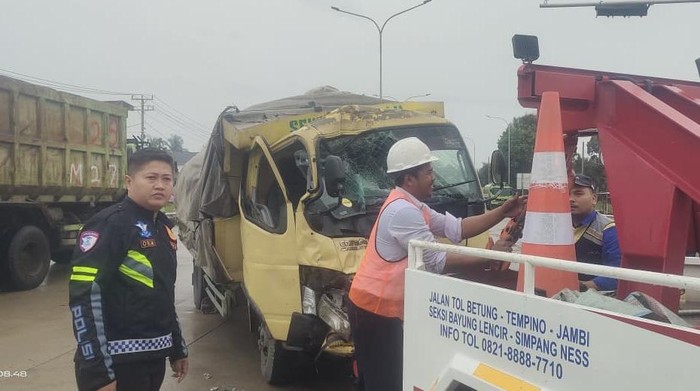 Dirlantas Polda Jambj Kombes Adi Benny Cahyono mengatakan kecelakaan itu terjadi di simpang Exit Tol Pijoan, sekitar pukul 08.00 WIB, Jumat (9/1/2026). Dua kendaraan yang terlibat yakni truk Mitsubishi Colt Diesel bernomor polisi BG-8042-AJ dan truk Hino BA-9637-NU.