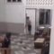 Kamar tersebut dalam keadaan terkunci dengan tali gorden. Di depan itu terlihat, Aslamah melihat banyak darah berceceran hingga dia menelepon suaminya.