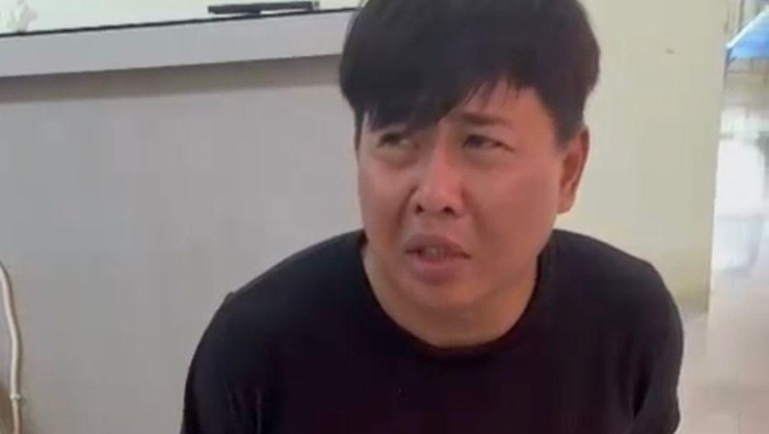 Dari foto yang beredar di media sosial, tampak pelaku berbadan gempal duduk di kantor polisi menggunakan baju hitam dengan menggunakan celana pendek. Wajahnya tampak seperti menahan tangis.