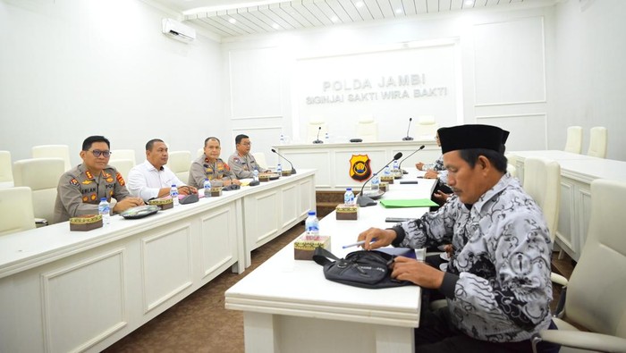 Dalam audiensi ini, pengurus PGRI Jambi diterima langsung oleh Wakapolda Jambi Brigjen Pol. M. Mustaqim. Turut mendampingi Dirkrimum Kombes Jimmy Christian Samma, Dirbinmas Kombes Henky Poerwanto, dan Kabid Humas Kombes Erlan Munaji.