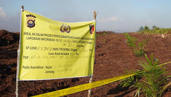 Polisi akhirnya menetapkan satu orang tersangka dari kasus kebakaran lahan di Desa Gambut Jaya, Kecamatan Sungai Gelam, Kabupaten Muaro Jambi, Jambi, pada akhir Juli 2025 lalu. Tersangka ialah ED (53), selaku pemilik lahan.